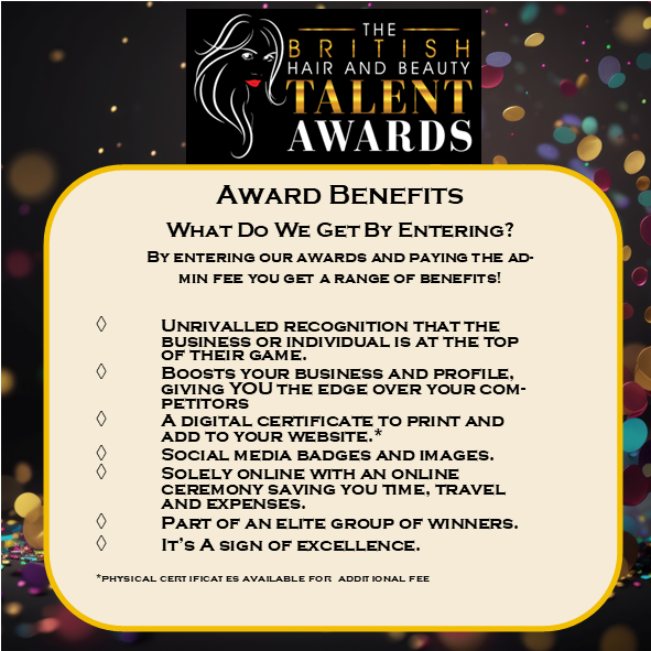 All finalists that have paid to take part and Winners will receive a certificate to show case in your salon. National Winners will also receive a bespoke trophy.